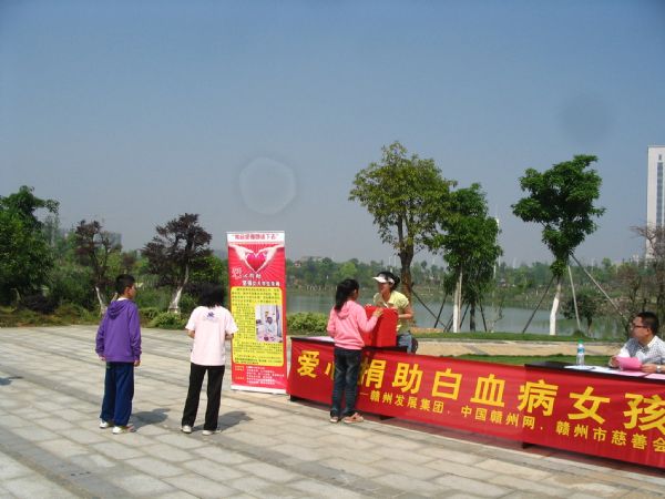 (集團(tuán)公司團(tuán)支部在中心城區(qū)設(shè)立流動(dòng)募捐點(diǎn),為患白血病大學(xué)生朱梅開(kāi)展“奉獻(xiàn)愛(ài)心、讓愛(ài)傳遞”募捐活動(dòng),組織發(fā)動(dòng)廣大團(tuán)員青年及市民向朱梅同學(xué)伸出援助之手,奉獻(xiàn)愛(ài)心。圖為中央生態(tài)公園募捐點(diǎn)。)