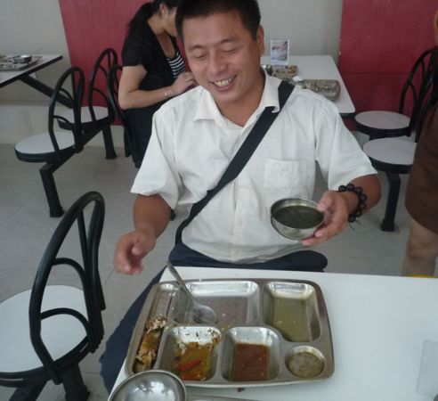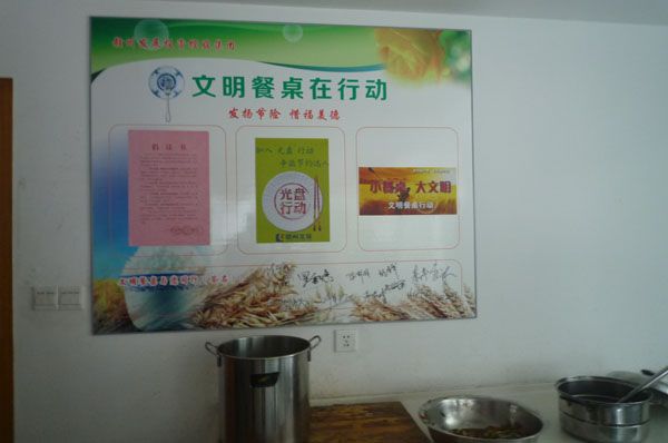 (員工餐廳內(nèi)張貼了“文明餐桌”宣傳牌)