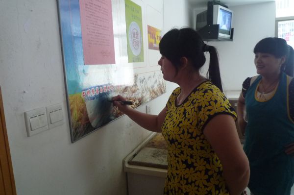 (廣大干部職工紛紛在“文明餐桌”宣傳牌上鄭重地簽上自己的名字)