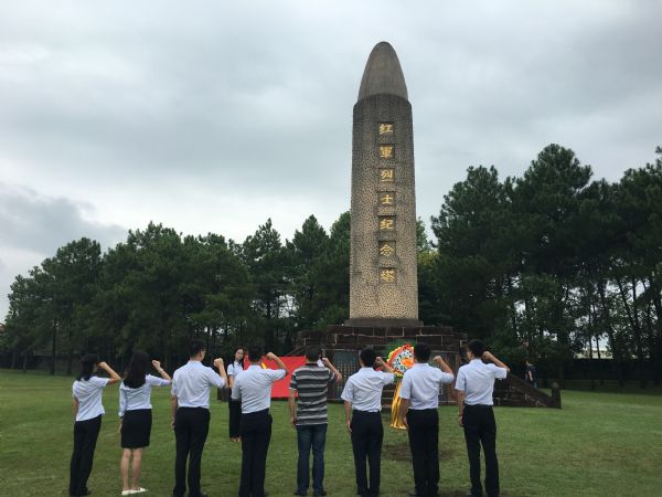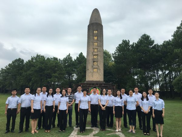 (圖為資產(chǎn)公司全體員工在紅軍烈士紀念塔前合影)