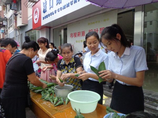 2015年6月19日,贛州發(fā)展集團(tuán)團(tuán)委組織青年志愿者來到文明單位結(jié)對幫扶點(diǎn)東外街道渡口路社區(qū)開展“迎端午、促和諧”包粽子比賽活動。