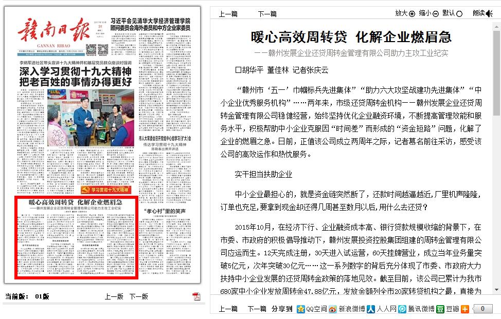 《贛南日報(bào)》刊發(fā)集團(tuán)旗下周轉(zhuǎn)貸公司助力主攻工業(yè)紀(jì)實(shí)