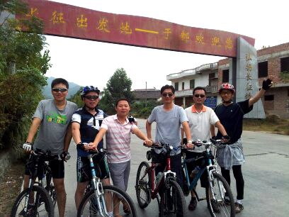 深秋時(shí)節(jié),天高氣爽。一行人上午840出發(fā),自行車滾動(dòng)的雙輪從喧囂的城市來到國(guó)道公路,一路上,大家結(jié)隊(duì)而行,向長(zhǎng)征出發(fā)地——于都駛進(jìn)。長(zhǎng)坡、中坡、短坡,才騎行6公里,大家就汗流浹背,氣喘如牛。往返90余公里,對(duì)于我們這些業(yè)余騎行隊(duì)員來說,距離不算短?;蛟S是平日里缺乏運(yùn)動(dòng),騎行隊(duì)伍里不斷有人出現(xiàn)體力不支現(xiàn)象。可想想紅軍長(zhǎng)征二萬五千里時(shí)的艱苦,這點(diǎn)累算什么。大家彼此鼓勁,在長(zhǎng)征精神的指引下,所有隊(duì)員順利到達(dá)目的地。
