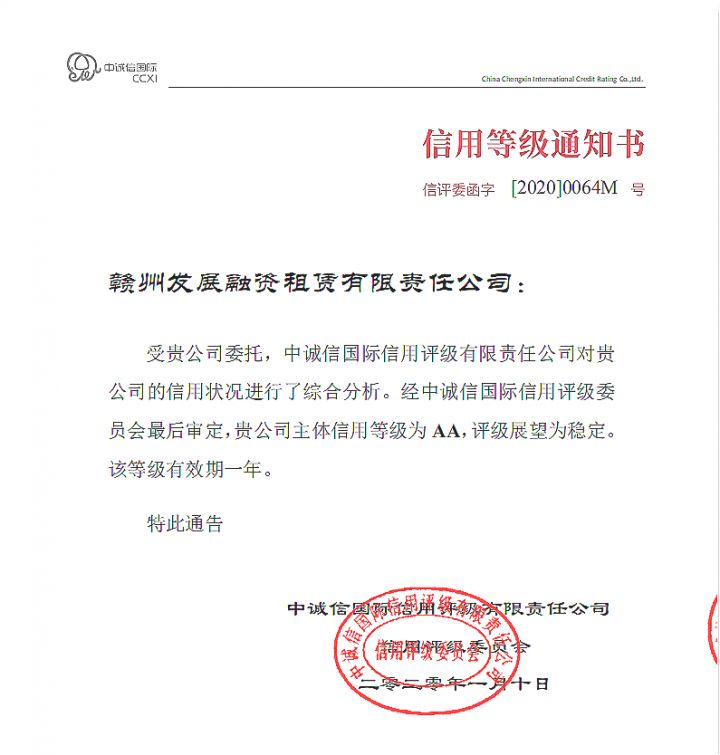融資租賃公司獲得AA評(píng)級(jí)