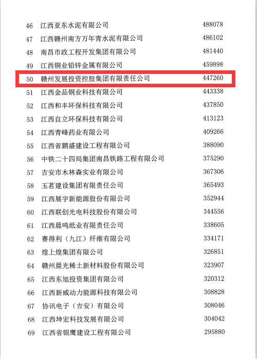 日前,江西省企業(yè)聯(lián)合會、江西省企業(yè)家協(xié)會發(fā)布了“江西企業(yè)100強”榜單,集團榮列2019江西企業(yè)100強榜單第50位。