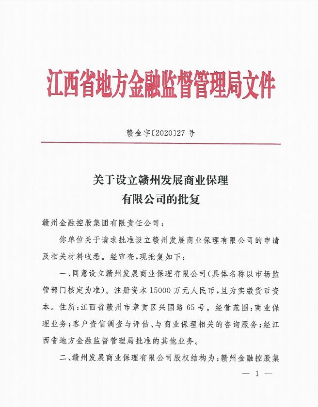 贛州發(fā)展商業(yè)保理有限公司正式獲批