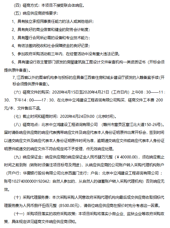 北京中立鴻建設(shè)工程咨詢有限公司關(guān)于江西省贛州市瑞康建設(shè)運(yùn)營管理有限公司贛州港臨港區(qū)標(biāo)準(zhǔn)廠房建設(shè)項(xiàng)目圖審服務(wù)項(xiàng)目的競爭性磋商公告