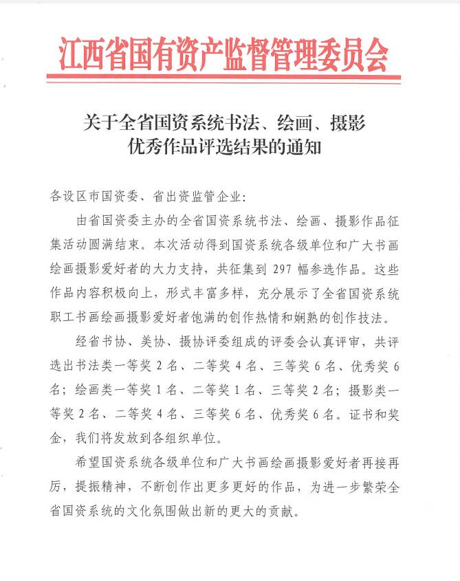 祝賀!集團(tuán)選送作品在江西省國資系統(tǒng)書法比賽中榮獲三等獎