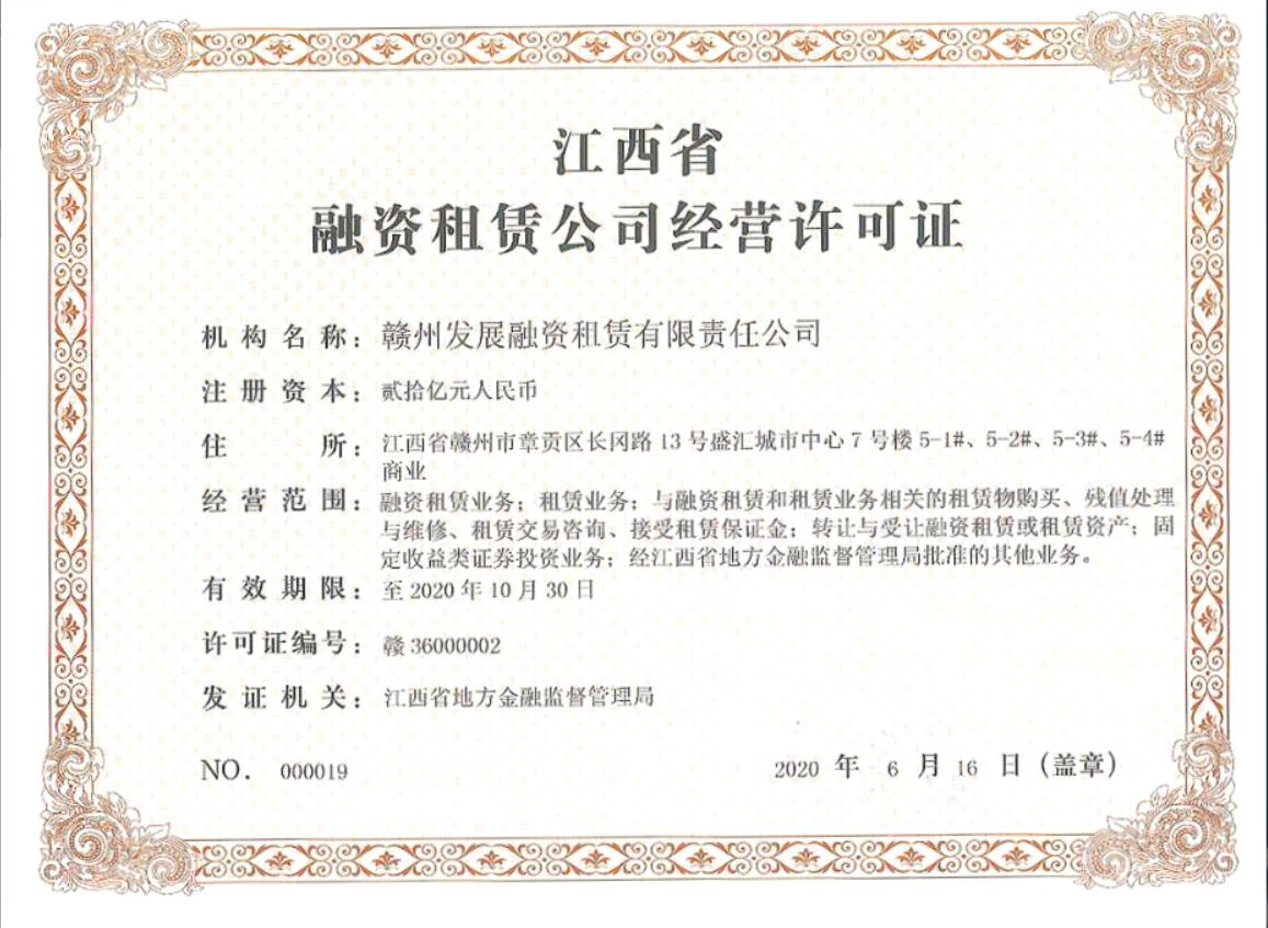贛州發(fā)展融資租賃公司實(shí)現(xiàn)增資至20億元
