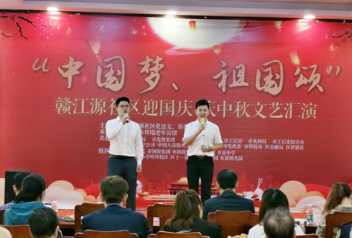 為豐富社區(qū)文化生活,弘揚(yáng)傳統(tǒng)文化,值此中秋、國(guó)慶佳節(jié)來(lái)臨之際,9月27日上午,由贛州集團(tuán)結(jié)對(duì)共建社區(qū)——贛江源社區(qū)主辦的“迎國(guó)慶 慶中秋”文藝匯演活動(dòng)在贛州市祥瑞老年公寓舉行,集團(tuán)旗下融資租賃公司青年志愿者參加了演出。