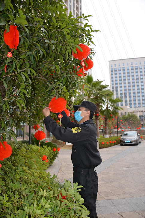 門廳、路燈、樹木都掛上了紅燈籠,園區(qū)內(nèi)每一處都散發(fā)著濃郁的喜慶氣息,不僅給節(jié)日增添了濃厚的色彩,也寓意著來年紅紅火火。