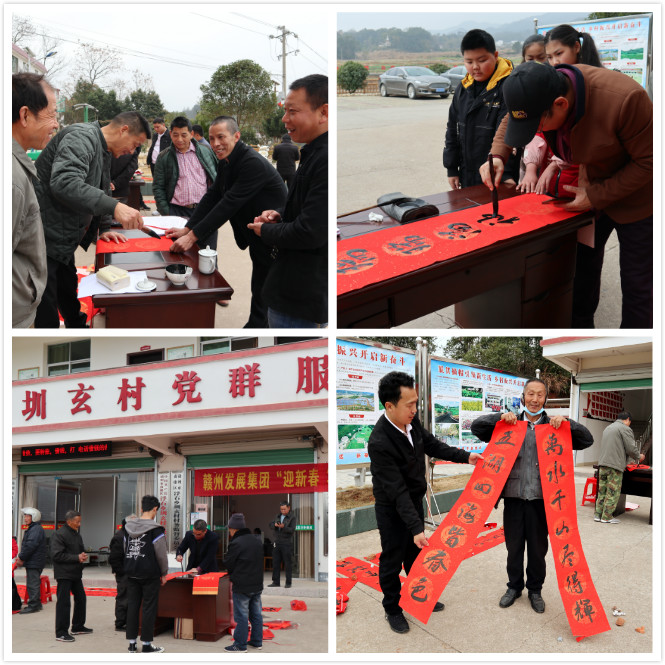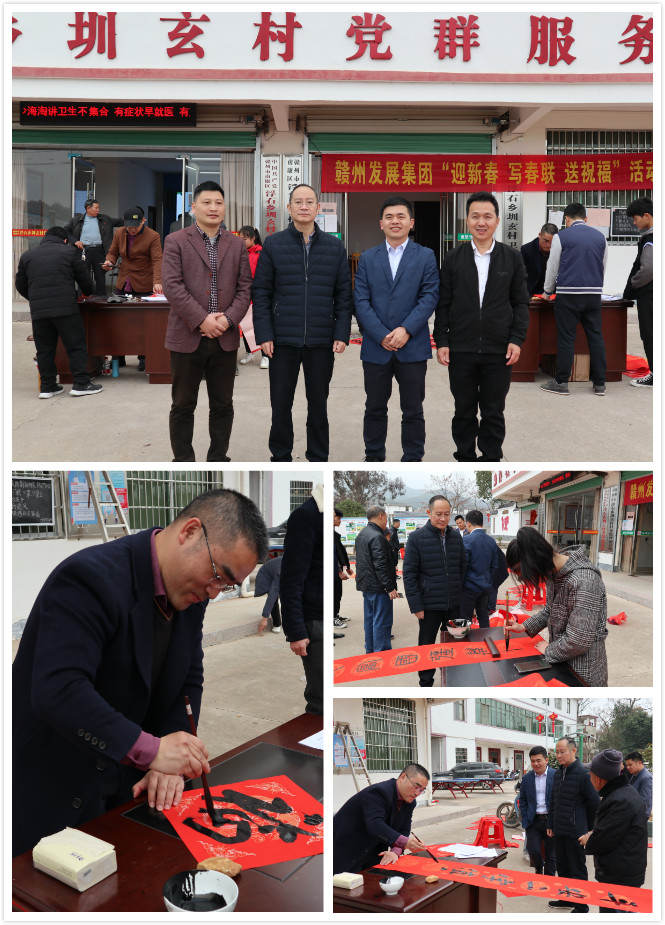 翰墨朱箋贈(zèng)暖意,文化下鄉(xiāng)送溫情。2月2日,贛州發(fā)展集團(tuán)組織書(shū)法小組成員連續(xù)第五年為集團(tuán)定點(diǎn)幫扶村——南康區(qū)浮石鄉(xiāng)圳玄村開(kāi)展寫(xiě)春聯(lián)、送春聯(lián)志愿活動(dòng)。贛州發(fā)展集團(tuán)黨委書(shū)記、董事長(zhǎng)李賤貴在現(xiàn)場(chǎng)為村民送春聯(lián)、送祝福。