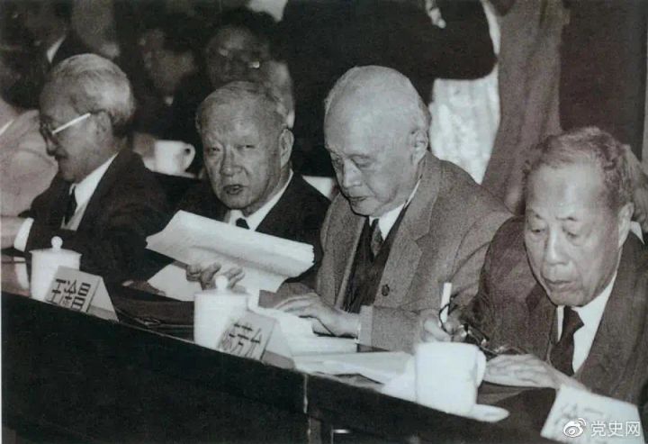 1986年3月,由4位老科學(xué)家倡議,經(jīng)鄧小平批示,中國(guó)制定實(shí)施了高技術(shù)研究發(fā)展計(jì)劃。圖為“863”計(jì)劃的4位倡導(dǎo)人王大珩(左2)、王淦昌(左3)、楊嘉墀(左1)、陳芳允(左4)。