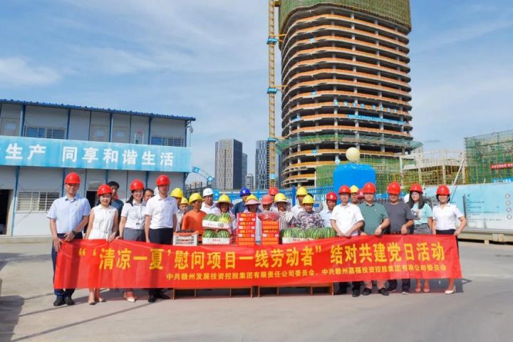 為深入開展黨史學習教育“我為群眾辦實事”實踐活動,落實國有企業(yè)與非公經(jīng)濟黨組織黨建結(jié)對共建工作要求,近日,贛州發(fā)展集團黨委聯(lián)合黨建結(jié)對共建單位——嘉福投資控股集團黨委,共同組織黨員深入嘉福集團旗下各建設項目開展“‘清涼一夏’慰問項目一線勞動者”黨建共建主題黨日活動。