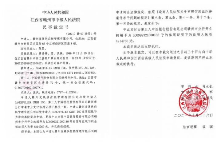 今年8月,供應(yīng)鏈公司受客戶委托向國外供貨商開立信用證進(jìn)口車輛兩批,共計價值171萬美元。10月18日,供應(yīng)鏈公司接到客戶青島川新緊急來電,表示其中一筆金額為66萬美元的提單與實(shí)際查詢信息不符,供應(yīng)商存在利用虛假提單進(jìn)行信用證詐騙嫌疑,如若該筆信用證按期兌付,青島川新將面臨錢貨兩空的重大損失。得知這一緊急情況后,供應(yīng)鏈公司負(fù)責(zé)人陳民第一時間召集相關(guān)人員商討對策,通過分析研判得出,此時解決問題唯一的辦法是法院向銀行開具止付令中止支付,但目前離銀行最后兌付時間僅剩一天,緊急關(guān)頭,供應(yīng)鏈公司集結(jié)業(yè)務(wù)人員迅速與銀行和法院進(jìn)行溝通,組織業(yè)務(wù)團(tuán)隊(duì)連夜加班準(zhǔn)備相關(guān)支撐材料,及時向法院提交了充足的證據(jù)。最終讓法院向銀行下達(dá)了中止支付民事裁定書,及時為客戶挽回了巨額損失。