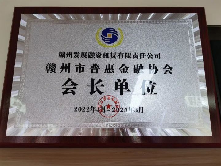 贛州發(fā)展集團旗下融資租賃公司當選為贛州市普惠金融協(xié)會新一屆會長單位