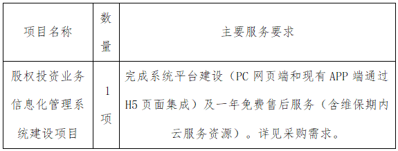 項(xiàng)目名稱:股權(quán)投資業(yè)務(wù)信息化管理系統(tǒng)建設(shè)
