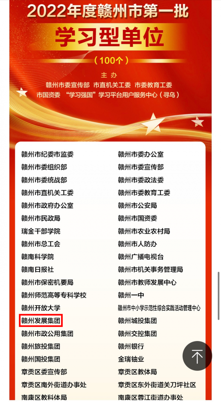 喜訊!贛州發(fā)展集團(tuán)獲評2022年度贛州市第一批“學(xué)習(xí)型單位”