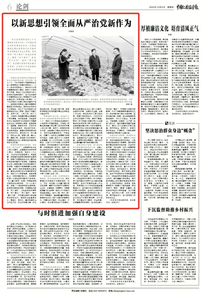 2022年12月8日,中國紀(jì)檢監(jiān)察報刊發(fā)江西省委常委、省紀(jì)委書記、省監(jiān)委主任馬森述的署名文章《以新思想引領(lǐng)全面從嚴(yán)治黨新作為》,現(xiàn)予以全文轉(zhuǎn)載。