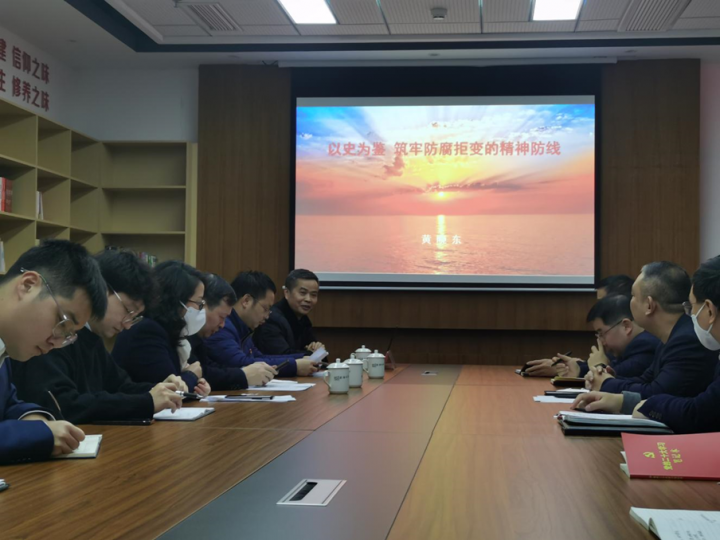黃曉東以《以史為鑒筑牢拒腐防變的精神方向》為題,從毛澤東主席《滿江紅·和郭沫若同志》這首詞說起,向支部黨員分享了百年反腐的警示、不忘誓言、穿透歷史的思考、先烈血與淚的囑托、領(lǐng)袖的家風(fēng)、發(fā)人深省的告誡等內(nèi)容,闡述了中國共產(chǎn)黨在反腐倡廉建設(shè)和作風(fēng)建設(shè)百年歷程中的初心使命,期間還與大家重溫了入黨誓詞,號召要始終保持“永遠在路上”的韌勁,以更加堅定的政治定力、昂揚的奮發(fā)斗志、過硬的能力作風(fēng),全力以赴在推動國資國高質(zhì)量發(fā)展上展現(xiàn)新?lián)?、新作為?/span>