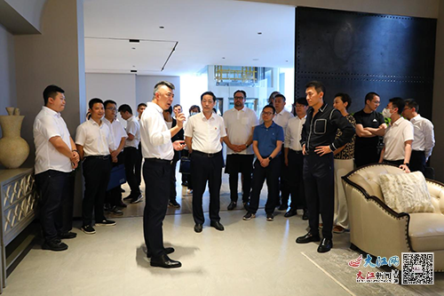 楊曉斌一行在美克家居董事長馮陸、副總經(jīng)理趙晶等一行人的帶領(lǐng)下,先是參觀了直播間、恣在家展廳、ART展廳和藝術(shù)空間,隨后深入DCS數(shù)控中心、數(shù)創(chuàng)一區(qū)、科創(chuàng)中心、數(shù)創(chuàng)二期等地,了解美克數(shù)創(chuàng)智造工廠智能研發(fā)、制造生產(chǎn)流程、自動化工藝、數(shù)字化定制、智能服務(wù)等方面情況。