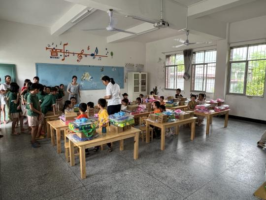 集團(tuán)青年志愿者們來到麻州鎮(zhèn)中心小學(xué)幼兒班,帶來了事先收集并采購的22名留守兒童“微心愿”,有書包、繪畫本、馬克筆、貼紙、水杯、芭比娃娃、拼裝車等志愿者們精挑細(xì)選的兒童節(jié)禮物,收到禮物的孩子們臉上洋溢著天真幸福的笑容。