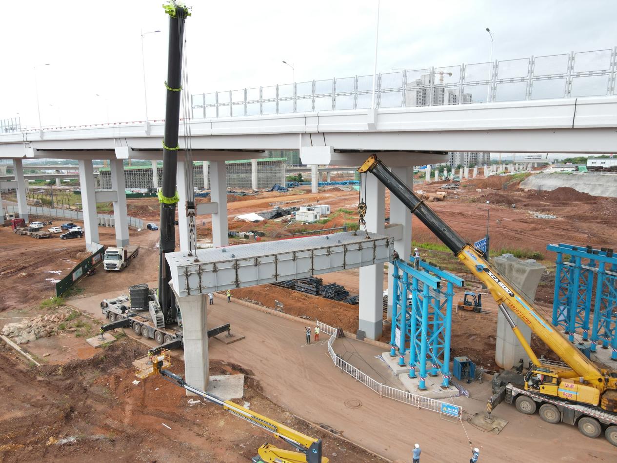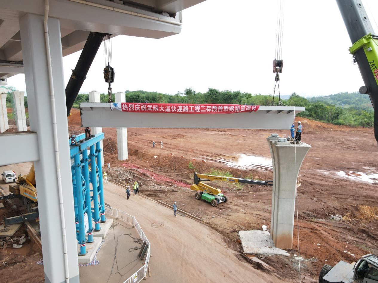 此次首聯(lián)鋼箱梁的成功架設(shè),有力地推進(jìn)了武陵大道快速路項目施工進(jìn)度,為早日全線貫通通車的施工目標(biāo)邁出了重要一步。