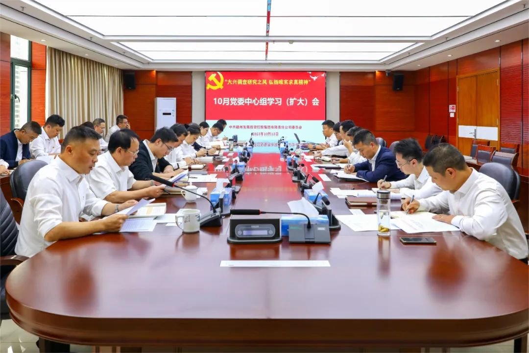 10月13日下午,集團召開黨委理論學習中心組集中學習研討會,會議由集團黨委副書記黃強主持,在家的集團高管出席會議,各黨支部書記,各部門、各子公司主要負責人列席會議。