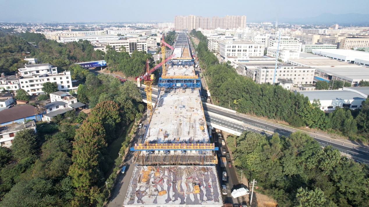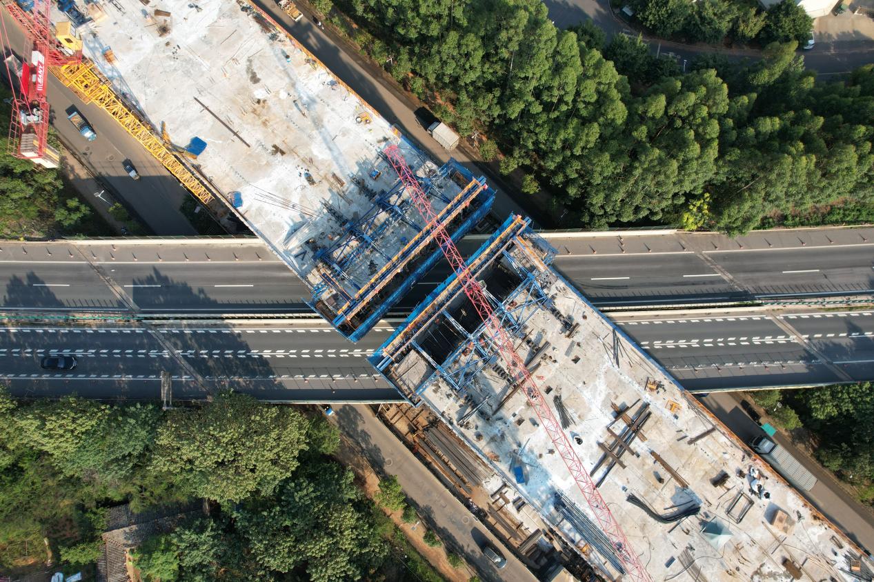 贛南大道快速路(康東大橋至創(chuàng)勝路東側段)項目預計12月15日上跨大廣高速連續(xù)梁段全部合攏