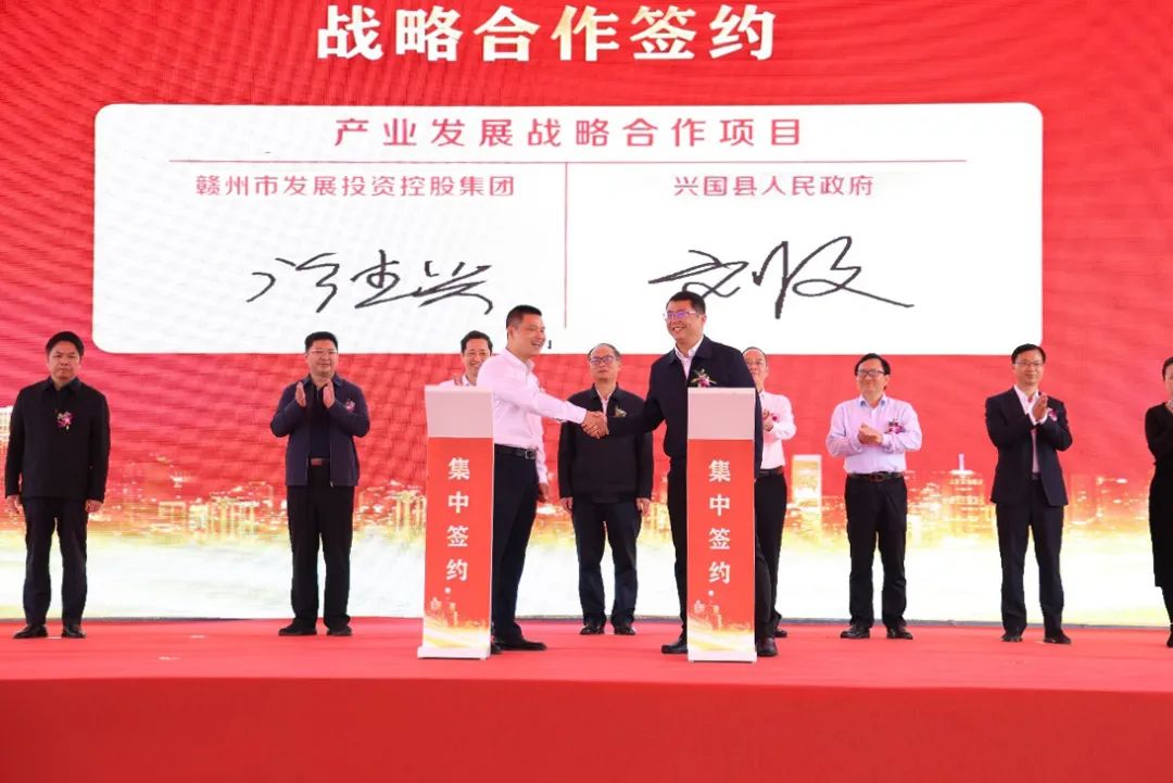 廖生興代表贛州發(fā)展集團(tuán)與興國縣人民政府簽署戰(zhàn)略合作協(xié)議,贛州工控集團(tuán)投資建設(shè)的礦業(yè)循環(huán)經(jīng)濟(jì)產(chǎn)業(yè)園簽約落地。