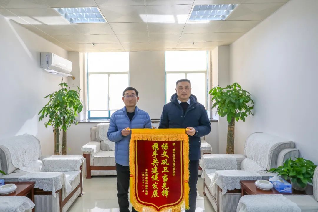 12月25日,贛州發(fā)展集團黨委副書記黃強雙手接過贛江源社區(qū)黨委送來的錦旗,“保文鞏衛(wèi)當先鋒,攜手共建促發(fā)展”是集團和社區(qū)在創(chuàng)文創(chuàng)衛(wèi)共建工作方面的生動寫照。
