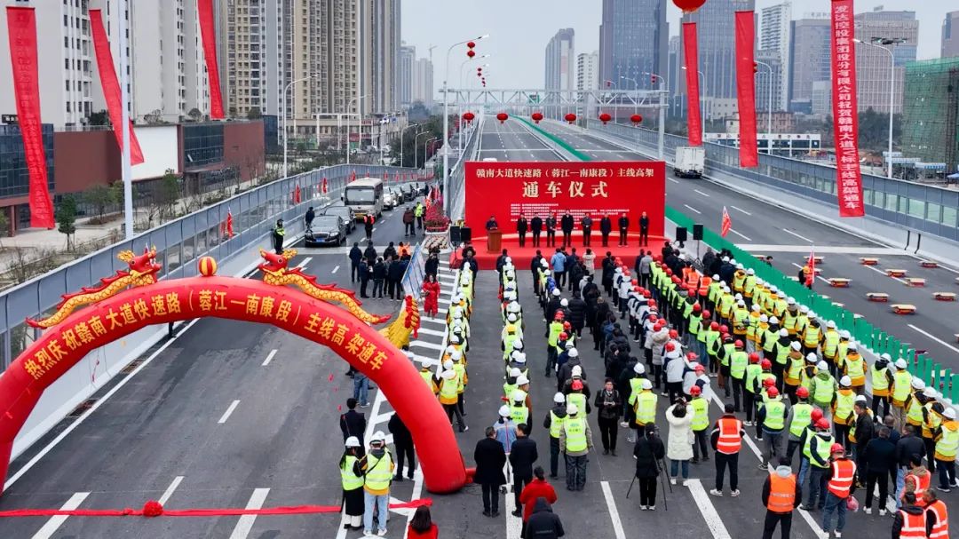 1月26日上午,備受關(guān)注的贛南大道快速路(蓉江-南康段)主線高架正式通車,南康區(qū)到主城區(qū)通勤時(shí)間約15分鐘,縮短了30分鐘,擴(kuò)大了中心城區(qū)半小時(shí)經(jīng)濟(jì)圈。市委常委、常務(wù)副市長胡劍飛,市委常委、南康區(qū)委書記何善錦,市政府副市長陳陽山出席通車儀式。