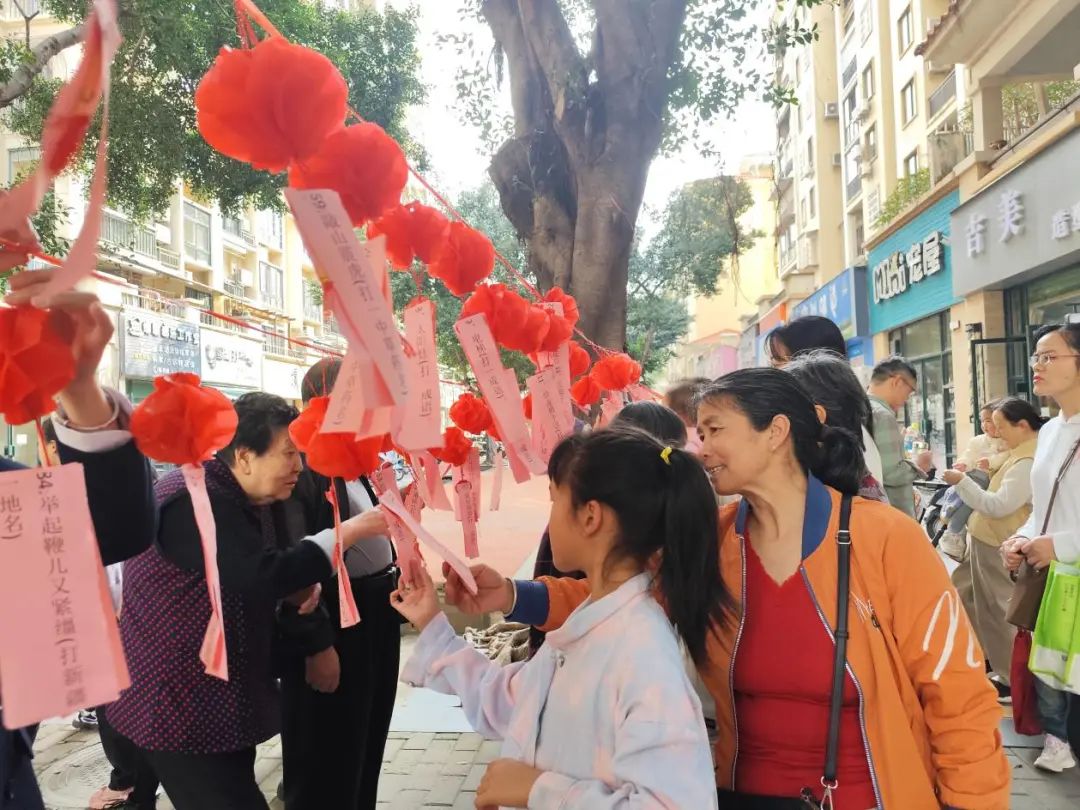 活動(dòng)現(xiàn)場(chǎng),張燈結(jié)彩,熱鬧非凡。社區(qū)工作人員和聯(lián)動(dòng)單位志愿者懸掛好燈籠,搭建起燈謎區(qū),懸掛著各式各樣的燈謎,包括經(jīng)典的成語(yǔ)、民間諺語(yǔ)等。居民們認(rèn)真思考著每一個(gè)燈謎的答案?;顒?dòng)吸引了越來(lái)越多的社區(qū)居民,有的盯著謎題凝神思考。每猜中一燈謎,不僅可以吃湯圓還能獲得抽獎(jiǎng)的資格。有的為自己猜中謎底露出喜悅的表情,興奮地到兌獎(jiǎng)處領(lǐng)獎(jiǎng)品,陣陣笑聲、歡呼聲不時(shí)傳出……