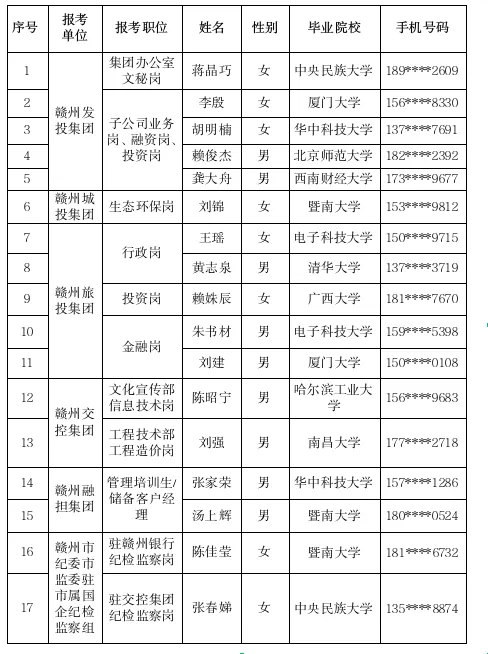 贛州市屬國企2024年組團引才招聘(成都站)入圍背景調(diào)查及體檢人員名單公示
