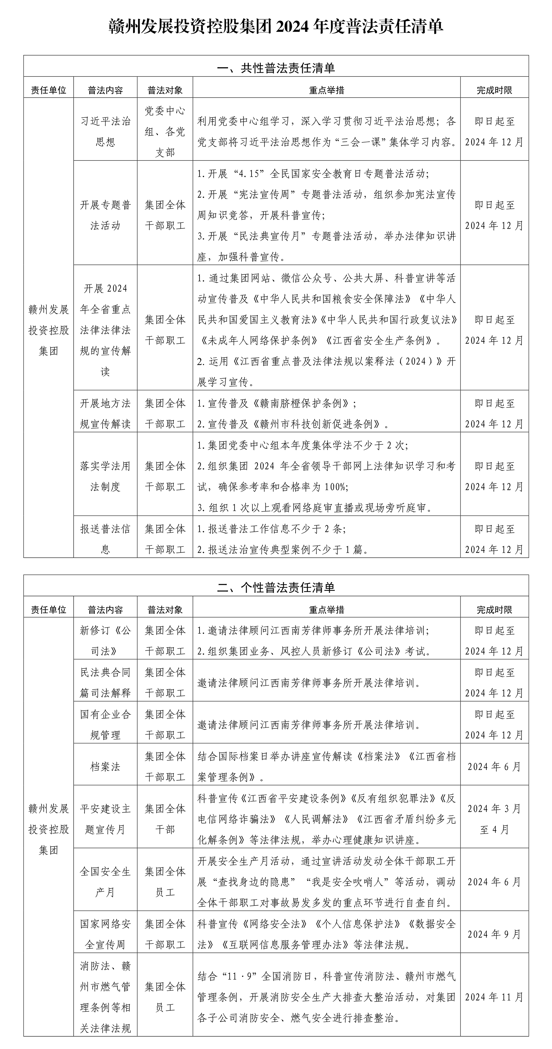 贛州發(fā)展投資控股集團(tuán)2024年度普法責(zé)任清單