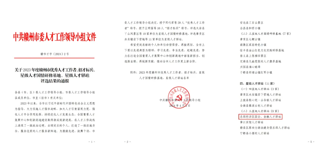喜訊!總部經(jīng)濟(jì)區(qū)國企、金融人才驛站成功獲評(píng)“贛州市2023年度三星級(jí)人才驛站