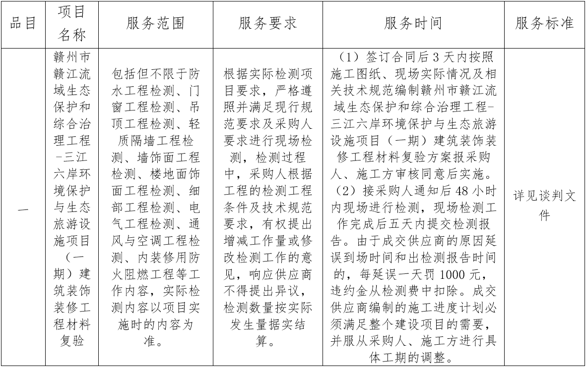 贛州市贛江流域生態(tài)保護(hù)和綜合治理工程-三江六岸環(huán)境保護(hù)與生態(tài)旅游設(shè)施項(xiàng)目(一期)建筑裝飾裝修工程材料復(fù)驗(yàn)競爭性談判成交結(jié)果公告