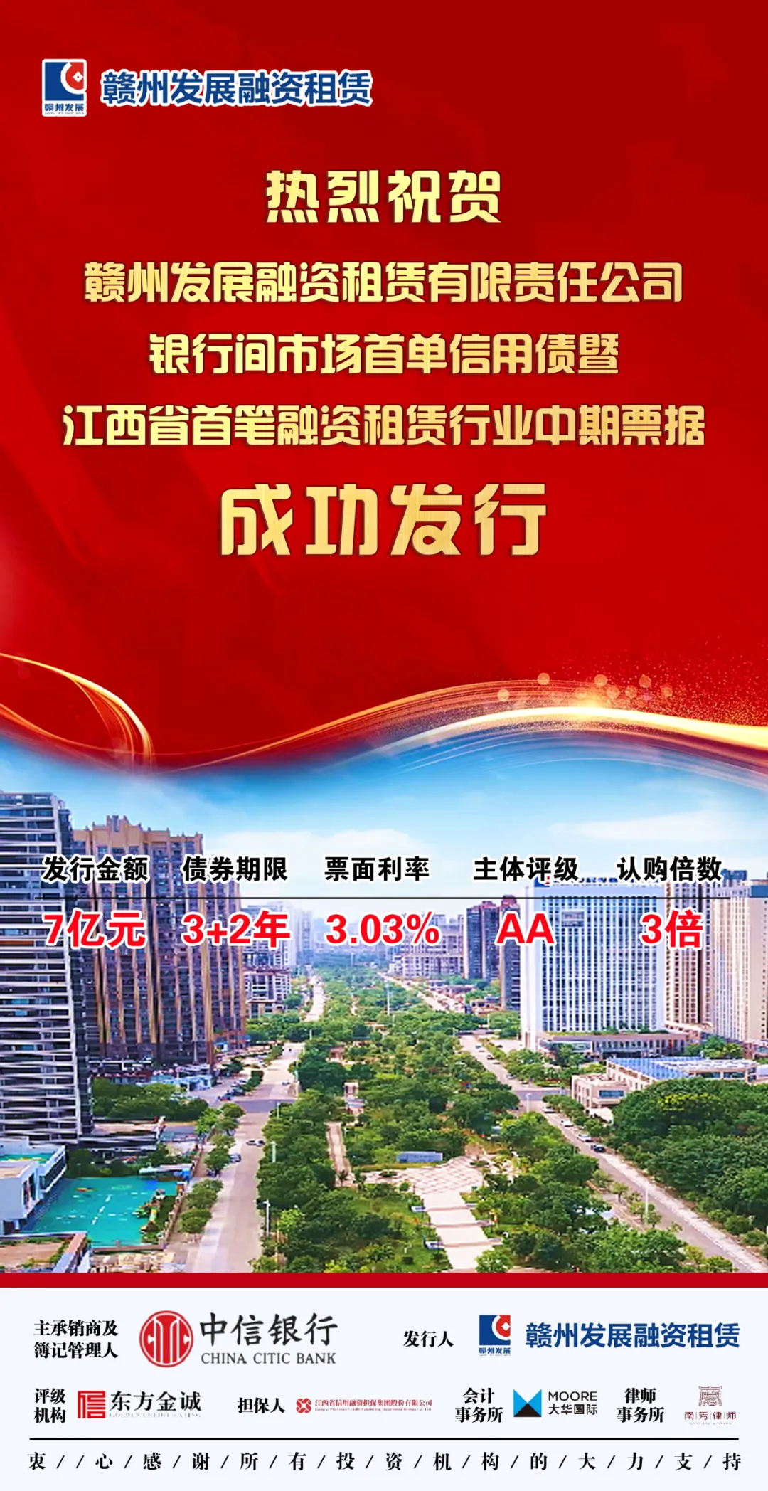 利率創(chuàng)新低!贛發(fā)租賃公司成功發(fā)行省內(nèi)行業(yè)首單中期票據(jù)