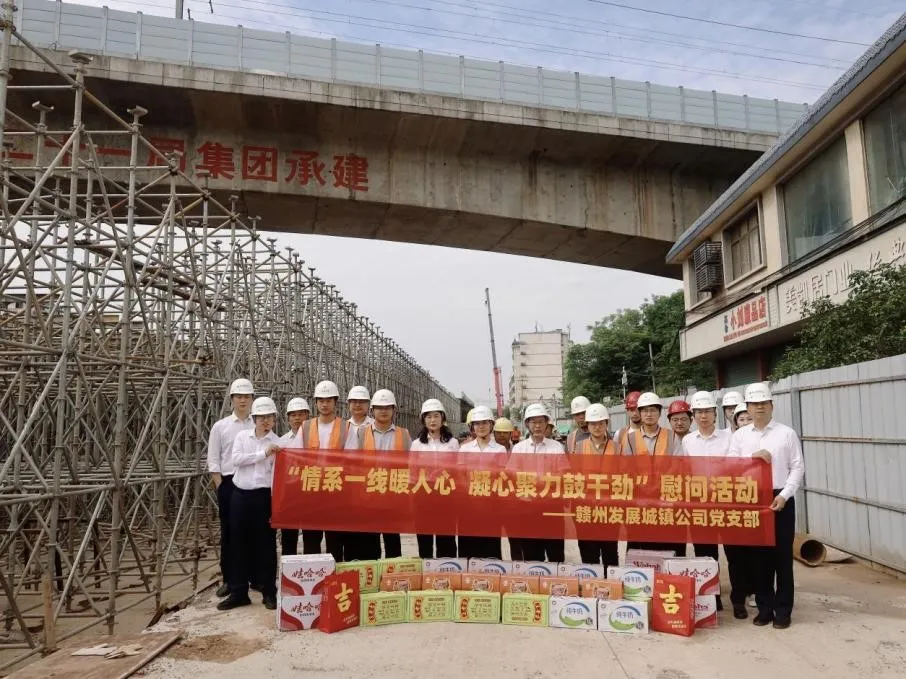 贛州發(fā)展城鎮(zhèn)公司黨支部組織黨員慰問東江源大道快速化改造工程涉鐵段一線建設(shè)者