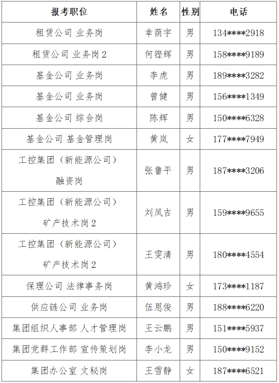 根據(jù)《贛州發(fā)展投資控股集團2024年公開招聘公告》有關(guān)規(guī)定,通過公開報名、簡歷初審、資格審查、筆試、面試、體檢與背調(diào)等程序,經(jīng)研究,確定以下14名同志為擬錄用人員,現(xiàn)予以公示: