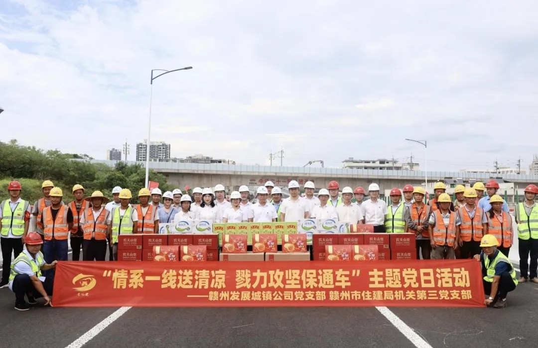 “情系一線送清涼 戮力攻堅保通車”贛州發(fā)展城鎮(zhèn)公司黨支部慰問各在建項目施工一線的建設(shè)者