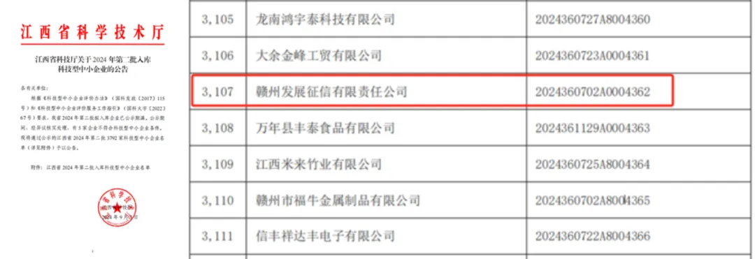 贛州發(fā)展集團(tuán)旗下征信公司獲國家科技型中小企業(yè)資質(zhì)