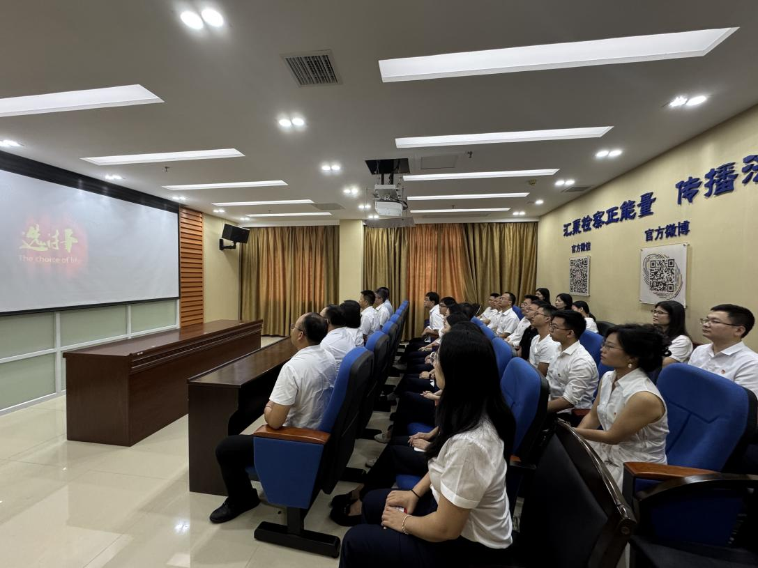 在廉政文化展示廳,黨員依次參觀“重拳出擊懲貪腐”“剖案析理警世人”“護(hù)花—全面預(yù)防花綻放”三大展區(qū),聆聽(tīng)現(xiàn)場(chǎng)講解,觀看違紀(jì)違法干部警示案例、懺悔錄像及歷代名人廉潔家風(fēng)故事展陳。隨后,集中觀看由贛州本地真實(shí)案例改編的微電影《選擇》,以 “身邊人、身邊事” 為切入點(diǎn),接受 “沉浸式” 警示教育,深刻感悟違紀(jì)違法對(duì)個(gè)人、家庭及社會(huì)的危害。
