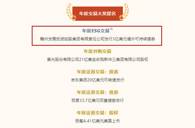 贛州發(fā)展集團3億美元可持續(xù)發(fā)展境外債券獲國際獎項提名