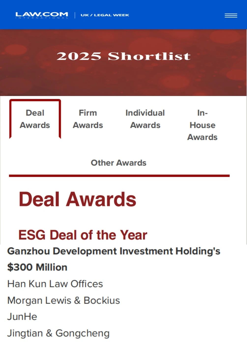 近日,國際知名法律媒體Law.com International公布2025年度亞洲法律大獎提名名單,贛州發(fā)展投資控股集團有限責(zé)任公司3億美元可持續(xù)發(fā)展境外債券項目強勢入圍“年度交易大獎”子獎項“年度ESG交易”獎項提名,成為境內(nèi)唯一獲得該獎項提名的企業(yè),以“可持續(xù)發(fā)展”鮮明屬性,彰顯集團在ESG實踐與國際資本運作中的雙重突破。
