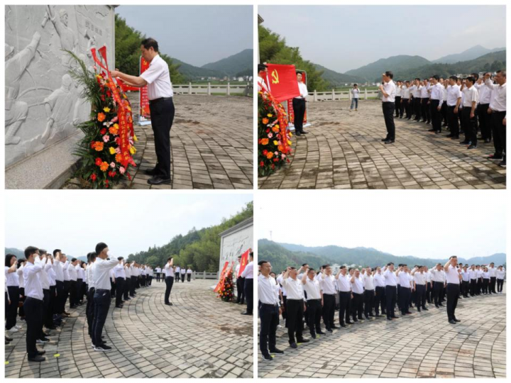 在信豐縣油山革命烈士陵園烈士紀(jì)念碑前,黨員干部們向革命先烈敬獻(xiàn)花圈,列隊(duì)整齊向革命先烈默哀。在紀(jì)念碑前,全體黨員干部舉起右手,握指成拳,莊嚴(yán)宣誓,重溫入黨誓詞,以擲地有聲的承諾表達(dá)初心不渝。通過(guò)祭奠活動(dòng),全體黨員干部的心靈得到了洗禮,以更加嚴(yán)謹(jǐn)?shù)膽B(tài)度和更加高昂的熱情投身集團(tuán)事業(yè)中。