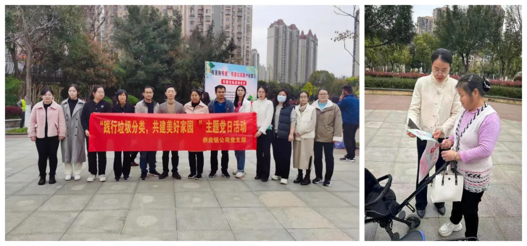 供應鏈公司支部黨員志愿者深入信豐路社區(qū)開展“踐行垃圾分類 共建美好家園”主題黨日活動。活動中,黨員志愿者們向來往的居民發(fā)放生活垃圾宣傳冊,細心講解生活垃圾的概念、分類標準以及垃圾分類實效,并耐心解答居民提出的日常垃圾分類難題,進一步普及了垃圾分類知識,傳播了垃圾分類理念,引導居民養(yǎng)成垃圾分類的良好習慣。